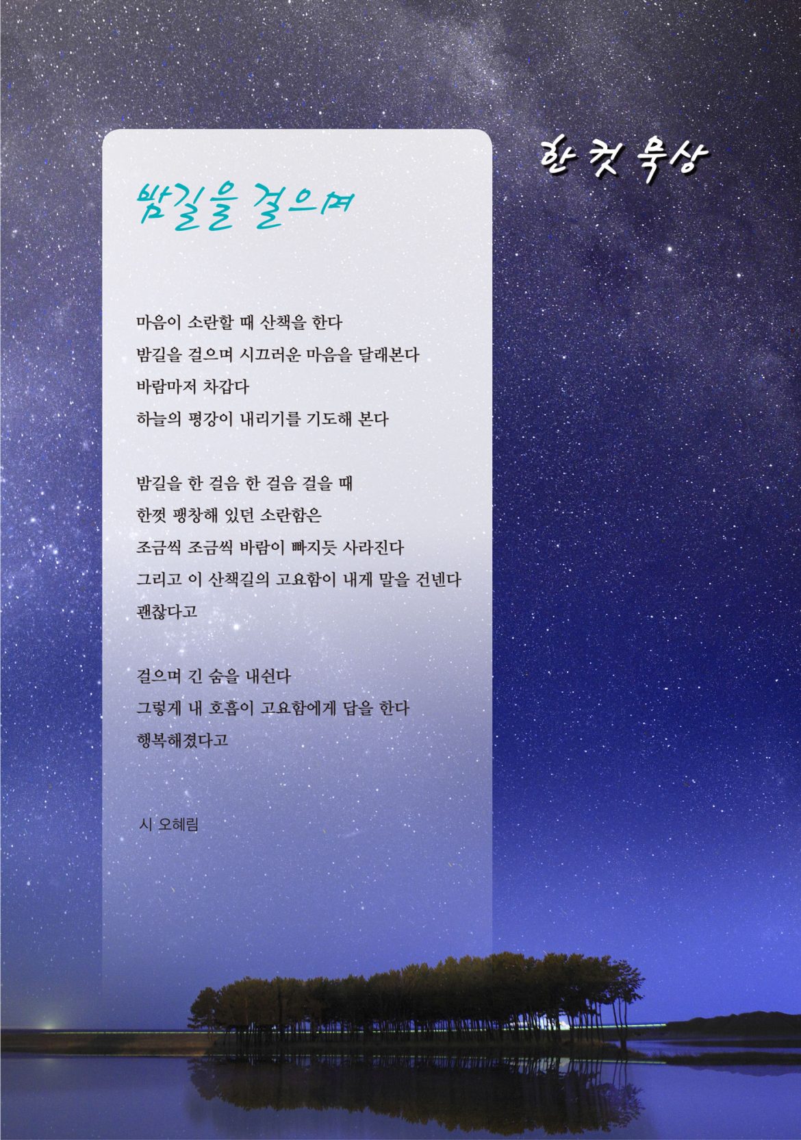 한 컷 묵상 밤길을 걸으며 by wecrun 2020년 January 26일 written by wecrun 2020년 January 26일 Meditationvol-90wec korea 0 FacebookEmail wecrun previous post 동북아 정세를 바라보는 선교적 관점 next post 사헬 지대의 열린 문 You may also like 한 컷 묵상 2025년 October 2일 오직 주만이 2025년 July 8일 보라 겨울도 지나고 2025년 April 14일 나와 함께 가자 2025년 February 7일 상한 갈대 꺾지 않으시는 2024년 October 8일 한 걸음 한 걸음, 주 예수와 함께 2024년 July 12일 므비보셋의 은혜 2024년 March 29일 열방을 위한 최고의 선물 예수 2024년 February 13일 “용기를 내라” 2023년 October 4일 “두려워 마라” 2023년 July 6일
